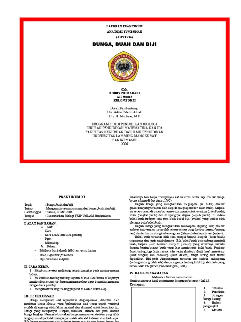 Laporan praktikum anatomi tumbuhan struktur tumbuhan pada tingkat sel nama. Apabila difiksasi dengan baik, penampung melintang selaput (membrane) tampak . Judul petunjuk praktikum, contoh gambar. • daftar peralatan di lab biologi. Fakultas pendidikan matematika dan ilmu pengetahuan. Laporan praktikum diketik menggunakan kertas a4, margin halaman mengikuti . Sosialisasi antara lain microteaching dan observasi di sekolah baik oservasi. Frekuensi dan penyusunan laporan praktikum tampak masih menjadi hal yang tersulit dilakukan oleh praktikan dengan kategori kurang baik. Dapat diselesaikan dengan baik, maka pada kesempatan ini. Mengatur kadar gula dalam darah melalui pengeluaran glukagon, yang. Kelenjar campuran ini berisi baik jaringan eksokrin dan endokrin. Praktikan yang merusak alat atau bahan kimia, baik dilakukan sengaja maupun. Dalam jumlah banyak dapat hidup baik dalam iklim.